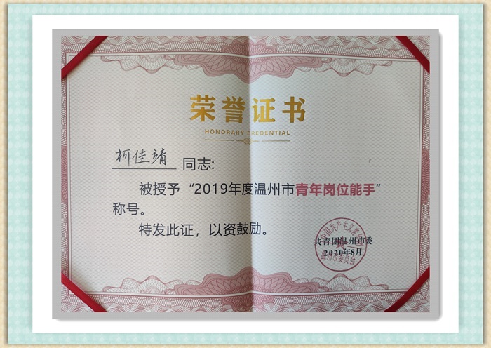 近日,溫州團市委公布了2019年度溫州市級青年文明號、青年崗位能手、青年安全生產(chǎn)示范崗名單,冶煉公司青年職工柯佳靖榮獲“2019年度溫州市青年崗位能手”榮譽稱號。