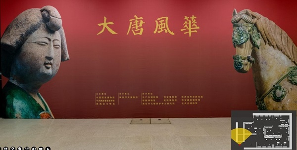 《大唐風華》云博物館匯集約120件(套)唐代精品文物,由文武安天下、皇室的珍寶、長安多麗人、騎獵散歌塵、大唐異鄉(xiāng)客、學理共歸真六部分展覽組成。文武安天下 ——通過文官俑、武觀俑等文物,展現(xiàn)文官執(zhí)筆安天下、武將策馬定乾坤的風采;皇室的珍寶——以何家村窖藏的一組煉丹用具和法門寺地宮的一組茶具為重點,展示唐代的金銀器加工工藝和奢華的宮廷生活;長安多麗人,通過展出的攜嬰飼鳥出行圖、持如意侍女圖、男裝捧盒侍女圖等壁畫,盡現(xiàn)唐朝女性的自由、奔放、熱情的獨特個性;騎獵散歌塵——以胡人打馬球圖壁畫、伎樂紋八棱金杯、彩繪陶腰鼓女坐俑等展示唐代的娛樂生活,體現(xiàn)出唐代社會中不同文化的交融;大唐異鄉(xiāng)客—通過“胡人備馬圖”壁畫、胡人俑、駱駝俑等精美的展品,為觀眾再現(xiàn)了唐朝的國力強盛和文化繁榮;學理共歸真——則以韓休墓出土的“高士圖”等壁畫表現(xiàn)儒家的道德觀念和處世哲學,反映出多種宗教匯合的唐朝包容開放的氣度。