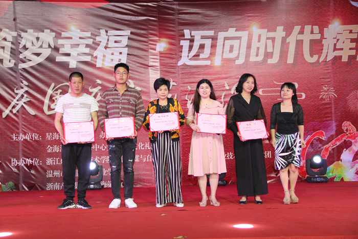 秋風(fēng)送爽迎金秋,盛世歡歌慶華誕。9月29日晚,在金海湖社區(qū)“攜手筑夢幸福,邁向時(shí)代輝煌”為主題的國慶文藝匯演中,對“最美系列”先進(jìn)人員和事跡進(jìn)行表彰。金?;瘜W(xué)品市場志愿者服務(wù)隊(duì)成立于2016年11月,共有志愿者70余人,活動參與人數(shù)達(dá)3000多人次。志愿者在服務(wù)市場的同時(shí),多次走進(jìn)兒童心理發(fā)展中心、周邊社區(qū),開展關(guān)愛自閉癥兒童等服務(wù)。金海化學(xué)品市場志愿者張維進(jìn)、梅章威因其愛崗敬業(yè)、在志愿者活動中發(fā)揮模范帶頭作用,榮獲“最美志愿者”稱號。