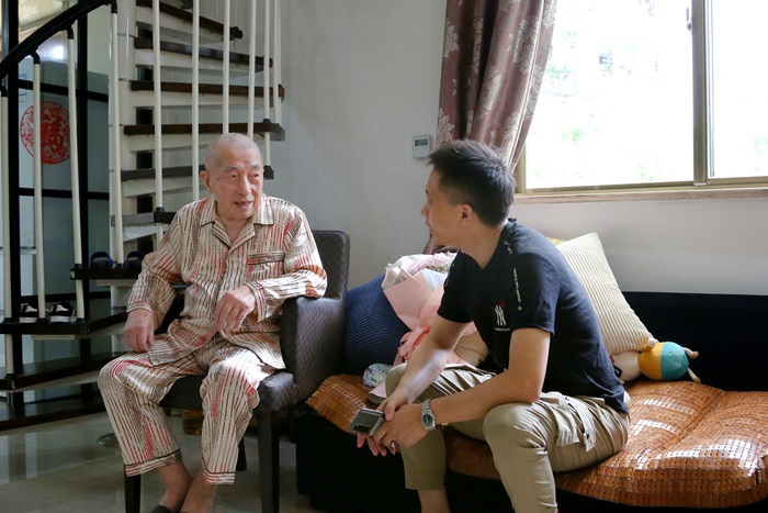 高鵬翔老人退休前曾在安下礦工作。老人思路清晰,講話條理清楚,風(fēng)趣幽默。回憶起當(dāng)年一起工作的老同事,感慨百年一瞬,人生短暫。平時老人生活簡樸,熱愛運動,日常生活都能自理,從不要求子女為其做事?,F(xiàn)與兒子一起生活,四代同堂,其樂融融。臨走時,老人開心的拉著金書記的手,感謝公司領(lǐng)導(dǎo)能在百忙中抽出時間看望他。