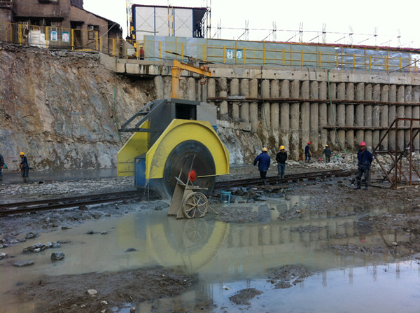 經(jīng)過前期施工,牛山國(guó)際四期工程位于2#樓無樁基區(qū)域局部已開挖至標(biāo)高-10.5米,已具備巖石切割條件。12月15日施工單位將切割設(shè)備吊入現(xiàn)場(chǎng)組裝、調(diào)試后, 12月18日地下室底板2-B軸交2-2~2-6基礎(chǔ)梁開始切割施工。