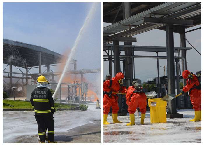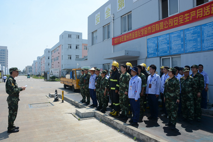 6月28日下午,以“安全生產(chǎn)月”活動為契機(jī),金海化學(xué)品市場聯(lián)合金海公安消防中隊(duì)在倉儲區(qū)舉行危險(xiǎn)化學(xué)品突發(fā)事故應(yīng)急救援演練。