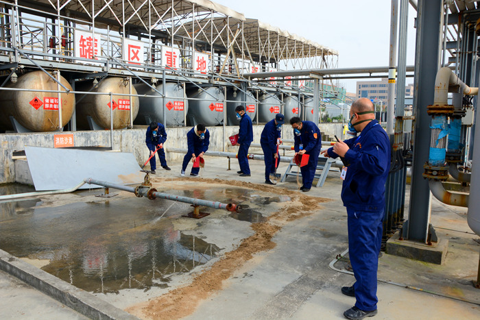 為進(jìn)一步提高金海市場(chǎng)對(duì)?;肥鹿蕬?yīng)急處置水平,檢驗(yàn)應(yīng)急救援預(yù)案的實(shí)用性和各應(yīng)急救援小組協(xié)同作戰(zhàn)能力。11月28日下午,金海市場(chǎng)在倉儲(chǔ)區(qū)舉行本年度第二次危險(xiǎn)化學(xué)品突發(fā)事故應(yīng)急救援綜合性演練。