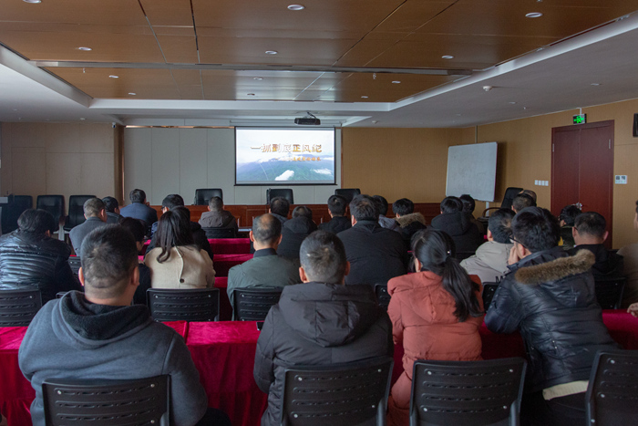 為進一步增強干部職工廉潔風險意識, 1月24日下午,冶煉公司組織干部職工在24樓會議室觀看廉潔教育視頻《一抓到底正風紀》新聞專題片。