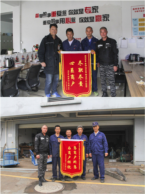 近日,金海公司倉儲部和后勤部分別收到寫有“盡職盡責,心系商戶”、“急商戶所急,為商戶排憂”的兩面錦旗,這是溫州市恒順化工有限公司總經(jīng)理黃錦敏,向金海公司在優(yōu)化營商環(huán)境、解決商戶困難、服務商戶發(fā)展上所做出的巨大努力表達由衷地感謝。
