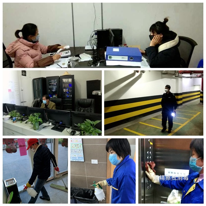 疫情防控阻擊戰(zhàn)中,還有不少溫冶物業(yè)人默默奉獻忙碌的身影。牛山商務(wù)大廈物業(yè)管理處的林西和周建蓮,每天撥打數(shù)十通電話,調(diào)查搜集大廈入駐商戶人員信息,做好人員排摸基礎(chǔ)工作;一日三餐只能以方便面充饑的保安人員,仍日夜堅守在崗位;保潔人員每天消殺面積數(shù)萬平方,渾身嗆鼻的消毒水味道、酸痛的胳膊是她們忙碌一天的“收獲”。