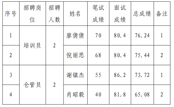 根據(jù)《溫州有色冶煉有限責(zé)任公司2022年面向社會(huì)公開(kāi)招聘一般崗位工作人員公告》,經(jīng)筆試和面試工作,現(xiàn)將入圍體檢、政審人員名單公布如下: